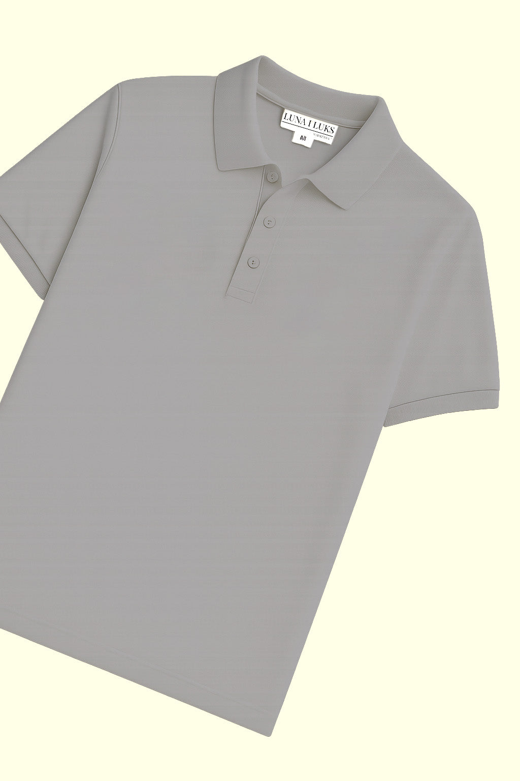 Szara Koszulka Polo z Kołnierzykiem Żebrowanym i Zapięciem na 3 Guziki | Olgierd – Ash Gray