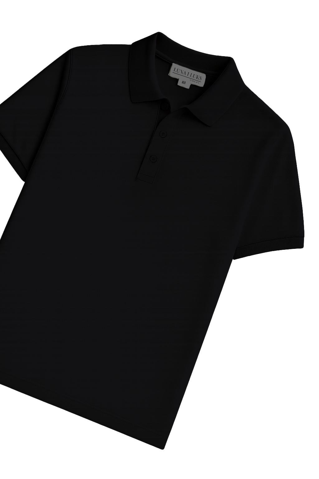Czarna Koszulka Polo z Kołnierzykiem Żebrowanym i Zapięciem na 3 Guziki | Kacper – Czarny