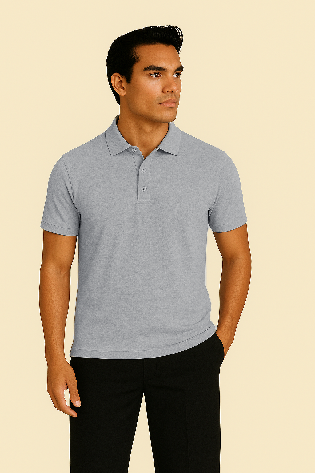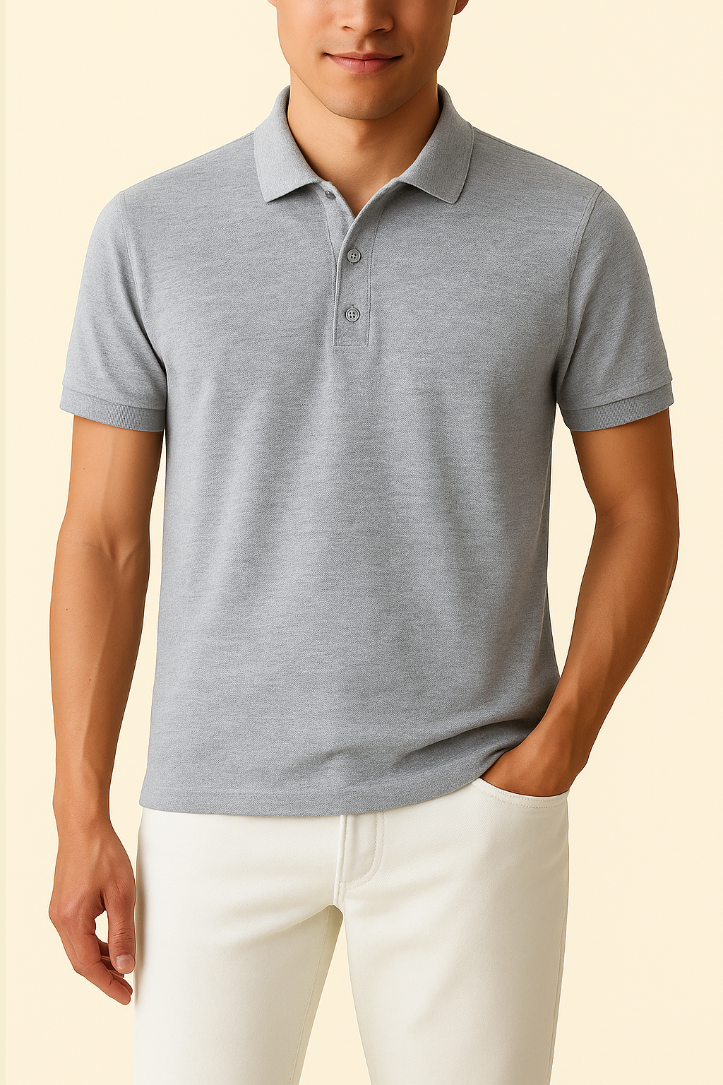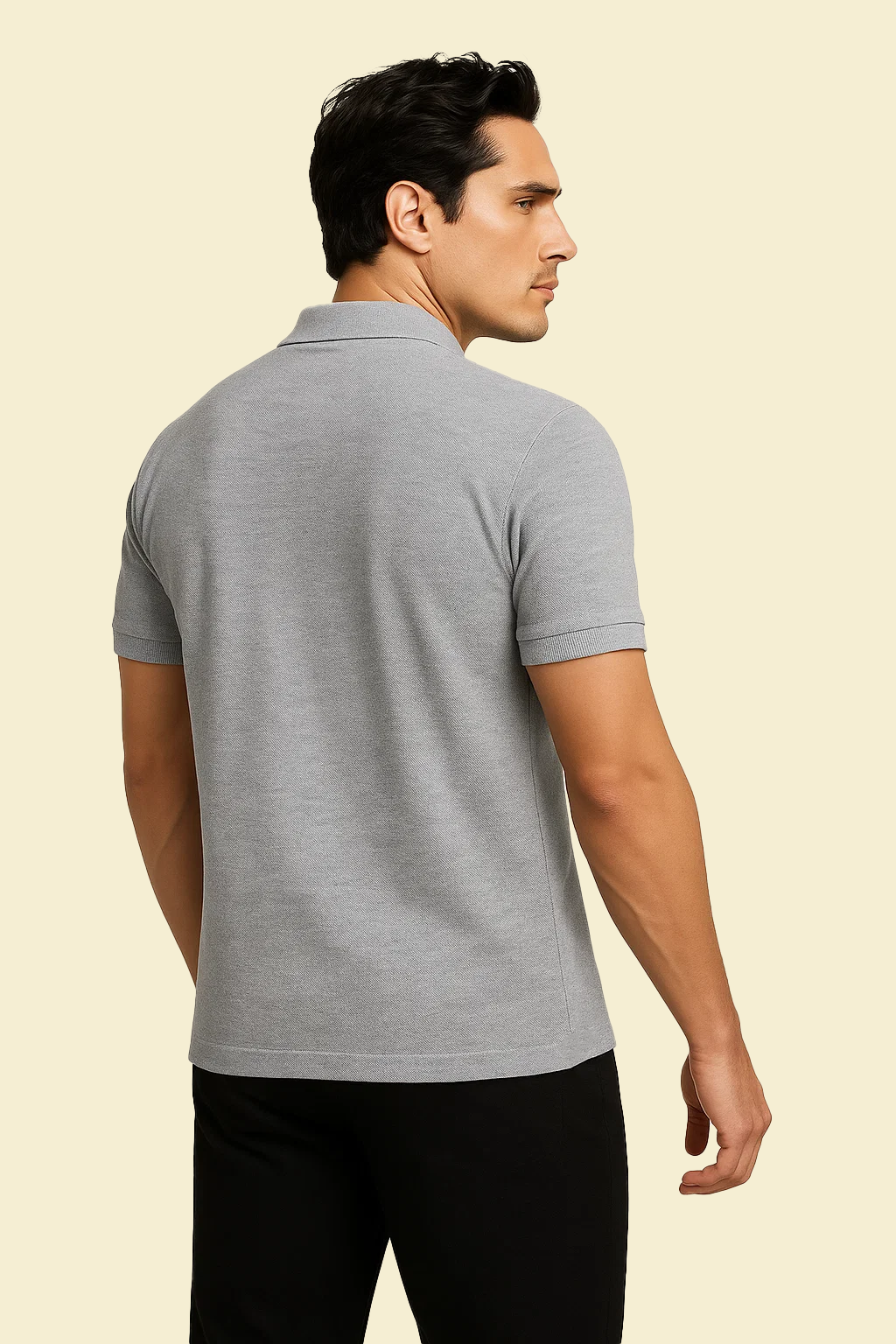 Szara Koszulka Polo z Kołnierzykiem Żebrowanym i Zapięciem na 3 Guziki | Olgierd – Ash Gray