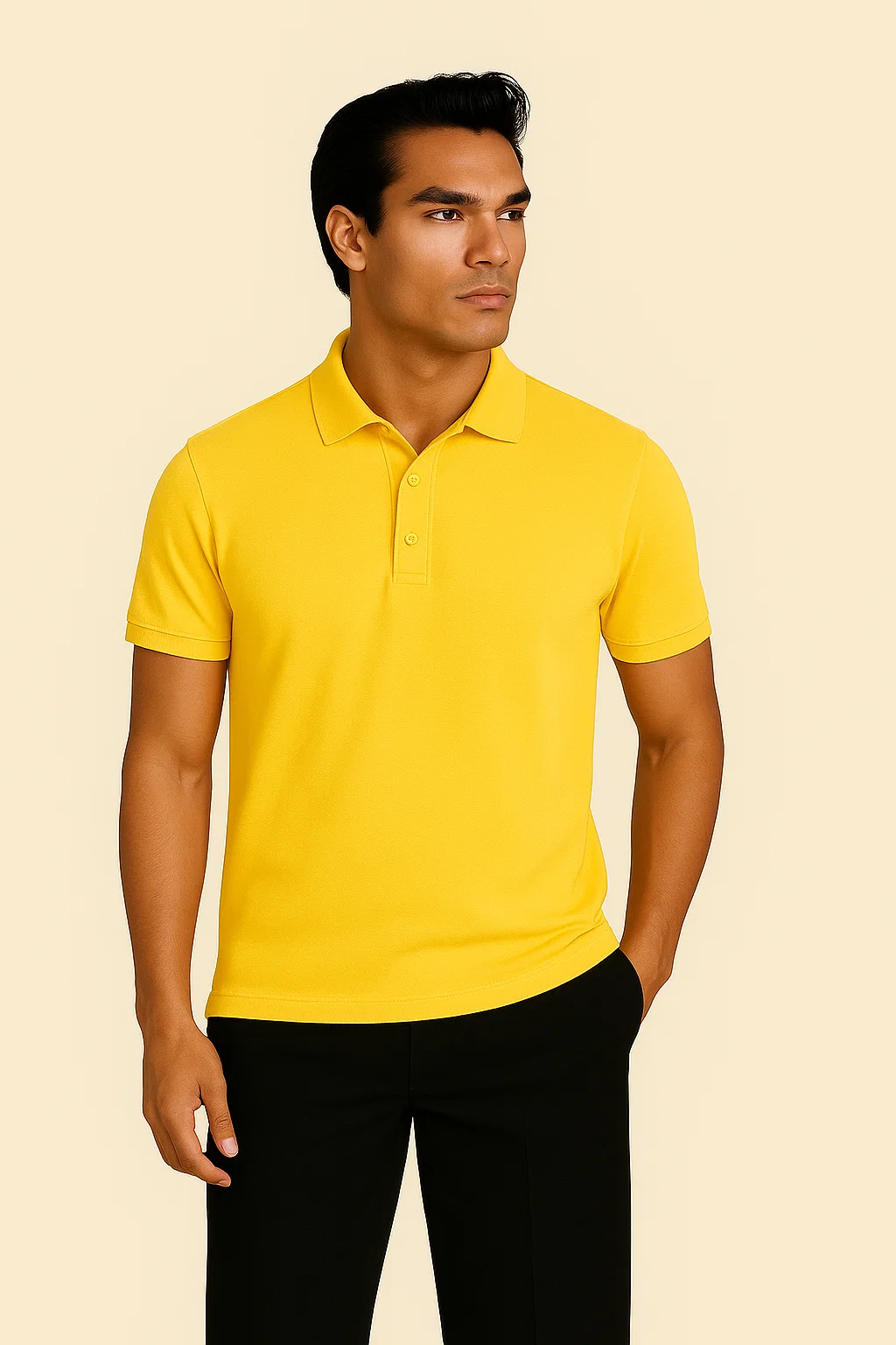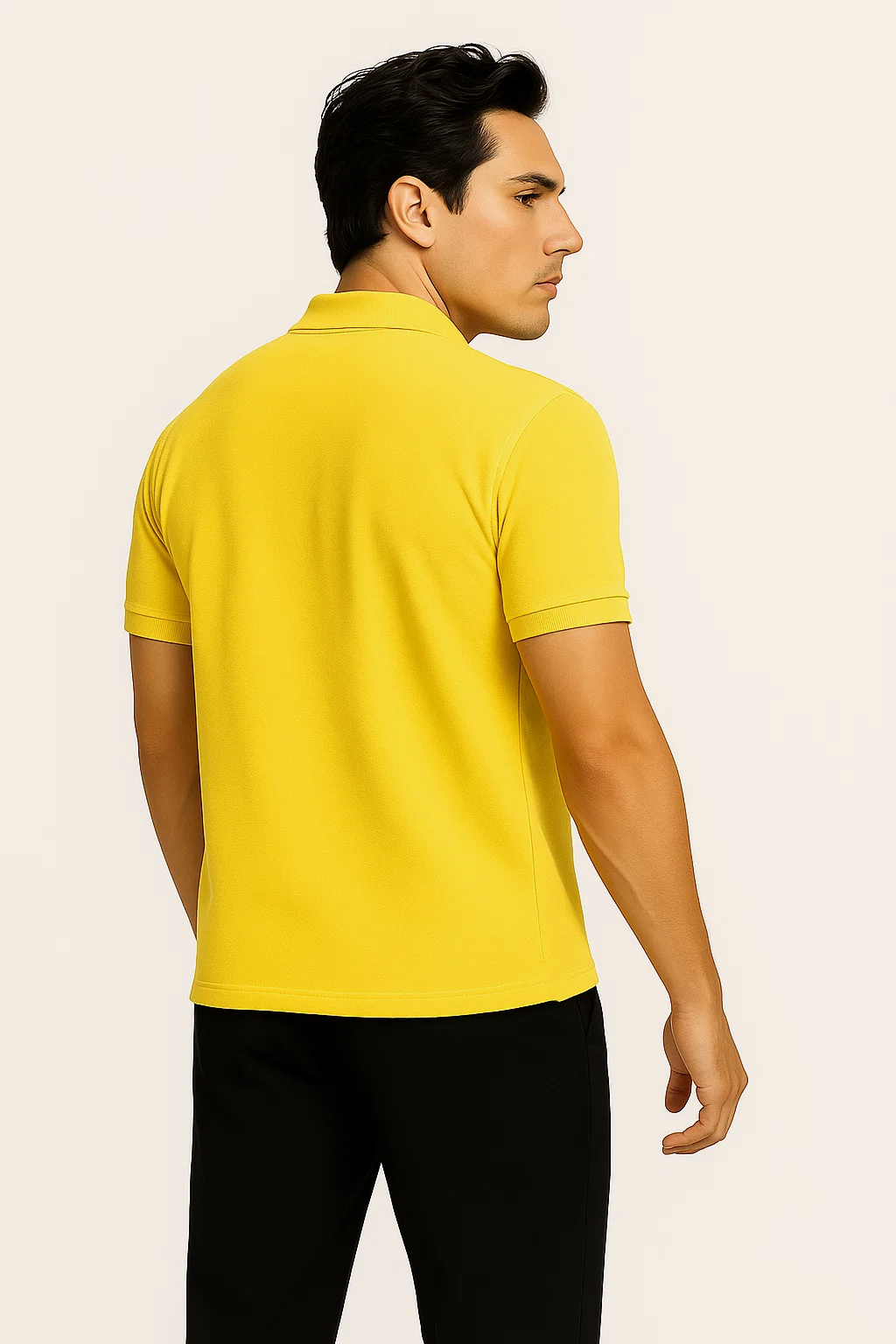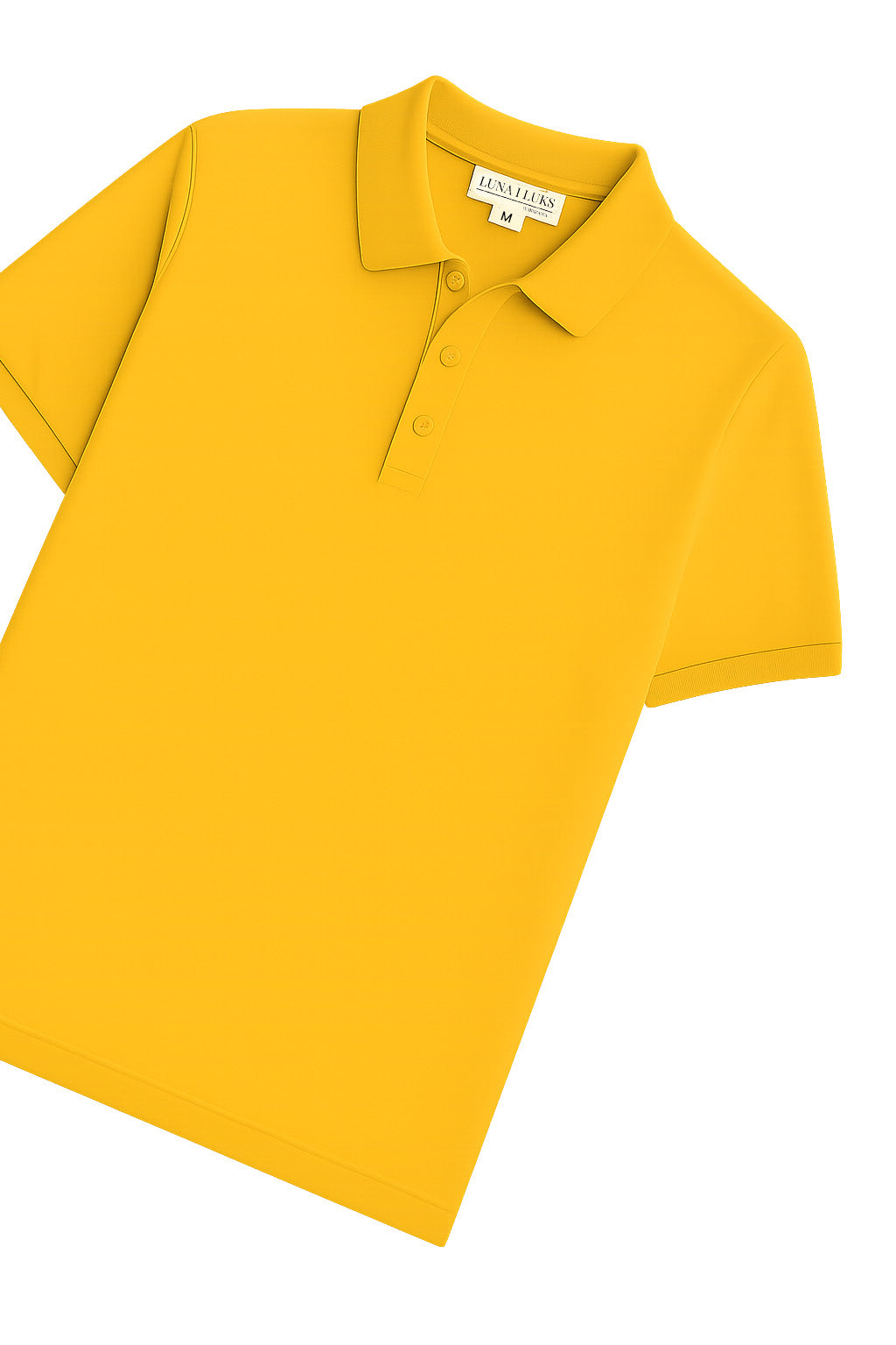 Żółta Koszulka Polo z Kołnierzykiem Żebrowanym i Zapięciem na 3 Guziki | Alan – Żółty